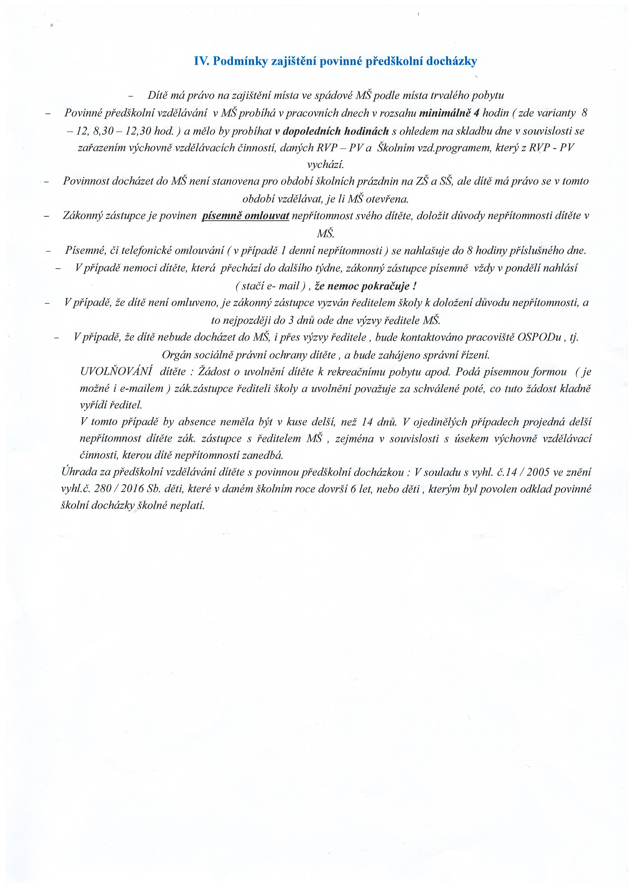 - Rozhodnutí o přijetí, či nepřijetí dítěte k docházce do MŠ, které vydá ředitelka školy v souladu s právními předpisy ( § 165 odst. 2 školského zákona a Správní řád ), budou mít zákonní zástupci nejdéle do 30-ti dnů od vrácení povinné dokumentace, a to po dohodě s ředitelkou mš k vyzvednutí na pobočce, kam zákonný zástupce dítěte - dítě zapsal.